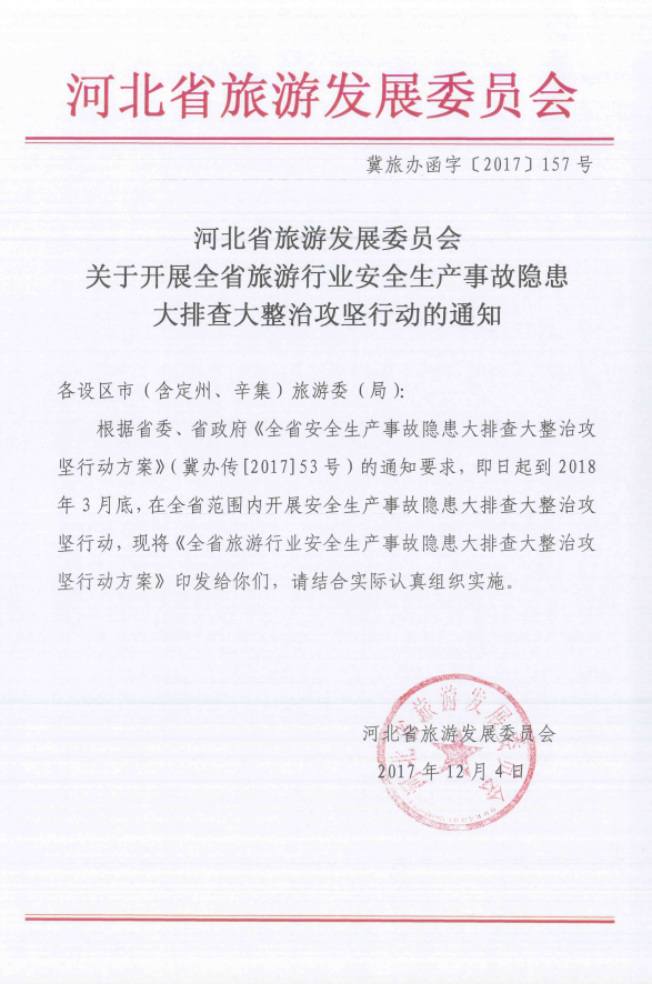 河北省旅游发展委员会关于开展全省旅游行业安全生产事故隐患大排查大整治攻坚行动的通知