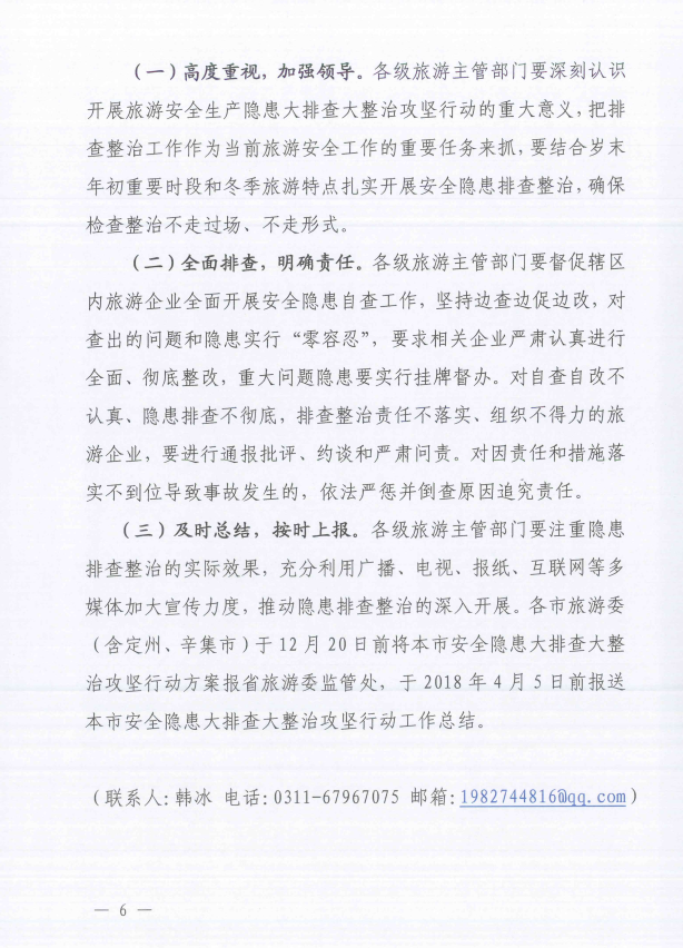 河北省旅游发展委员会关于开展全省旅游行业安全生产事故隐患大排查大整治攻坚行动的通知