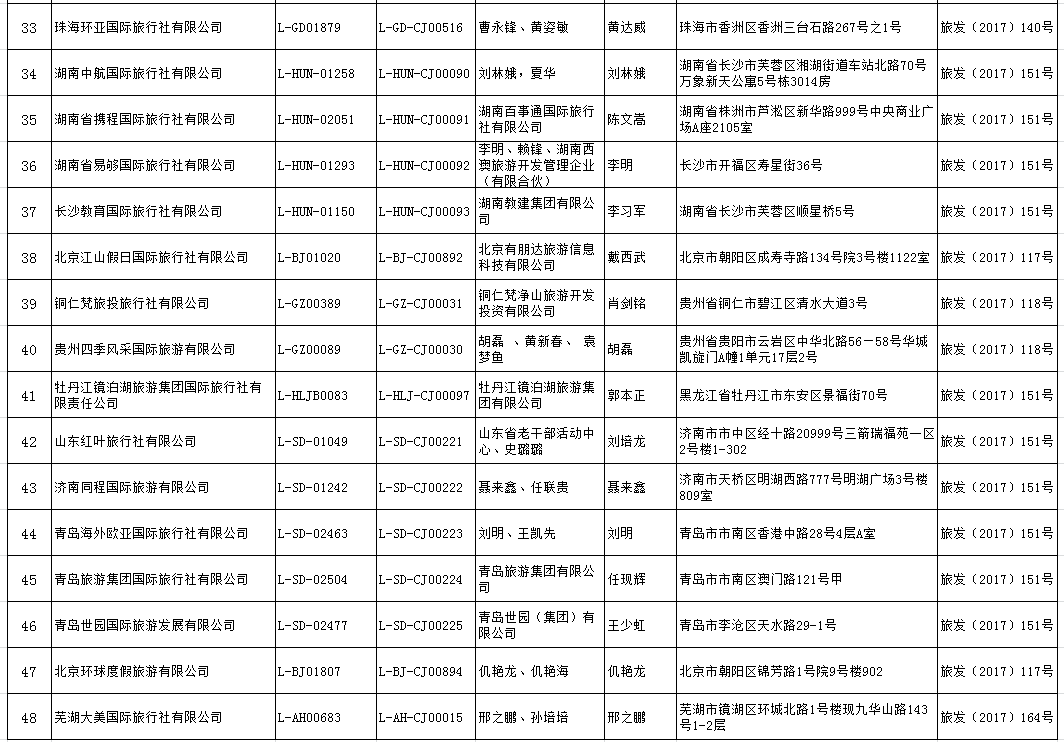 按照《旅行社条例》和《中国公民出国旅游管理办法》,许可以下48家旅行社经营出境旅游业务: